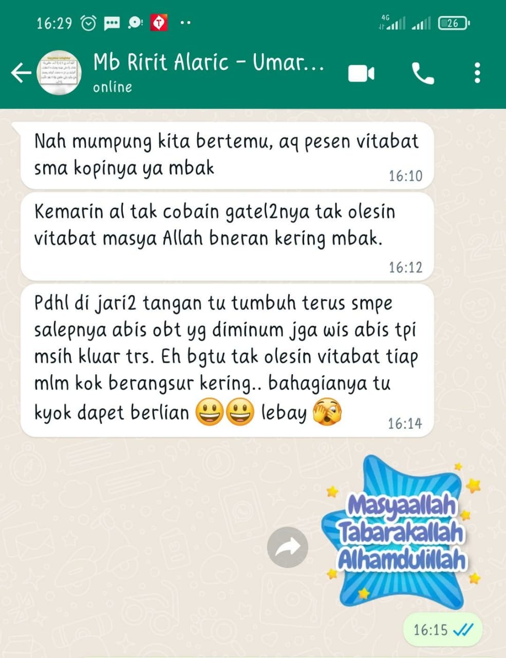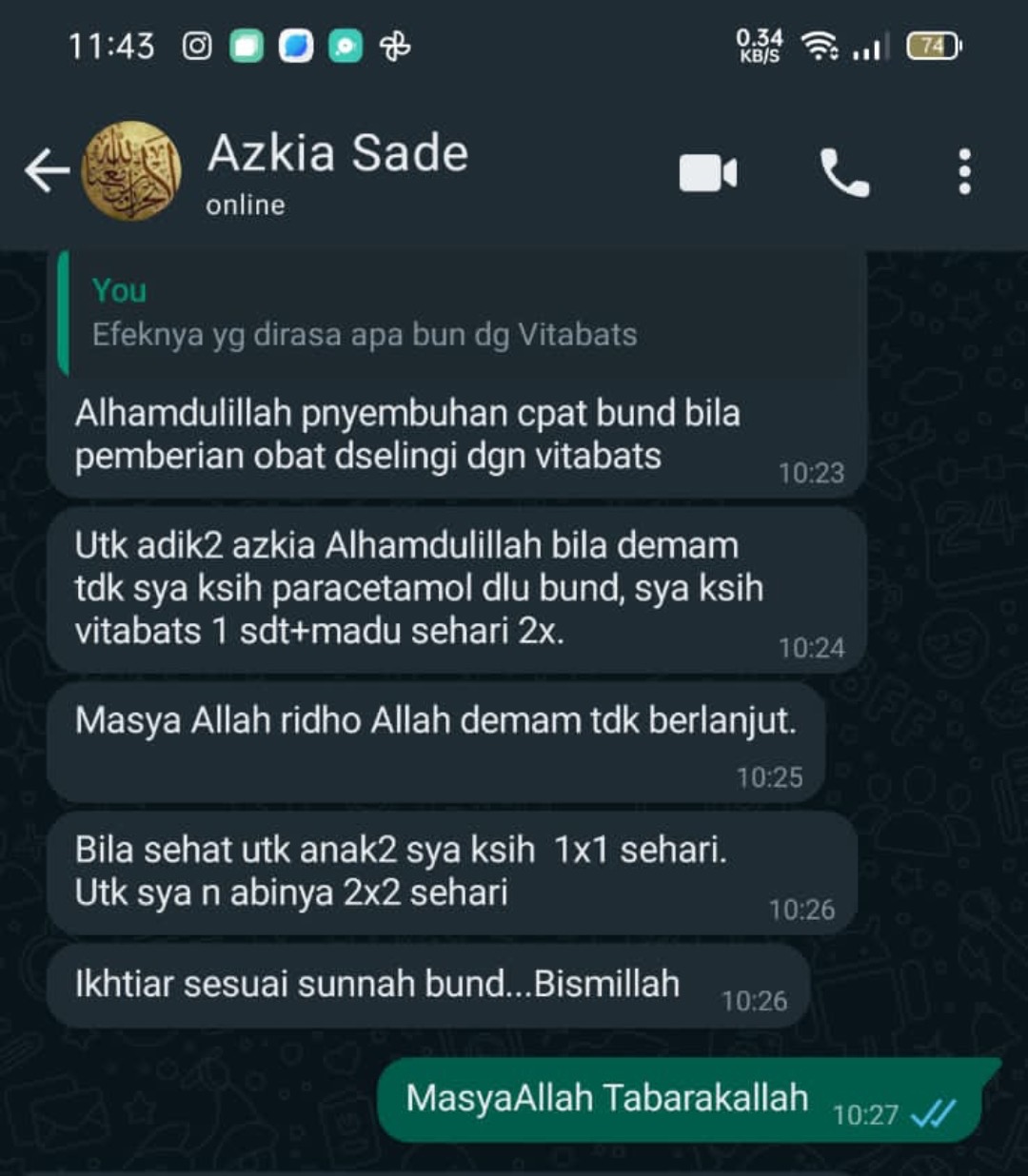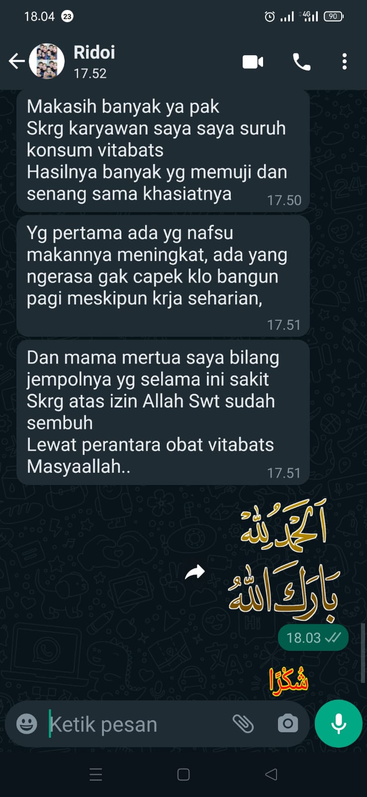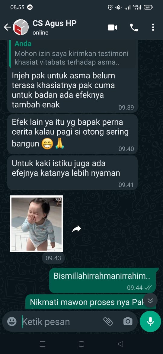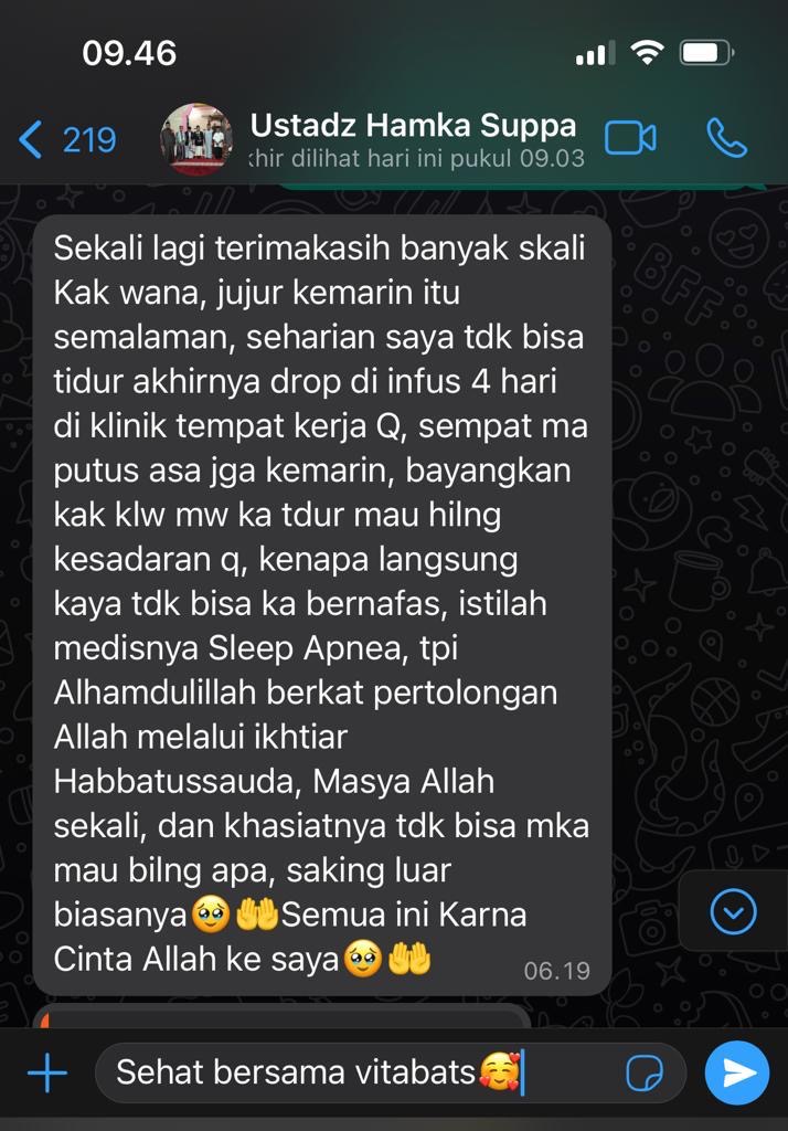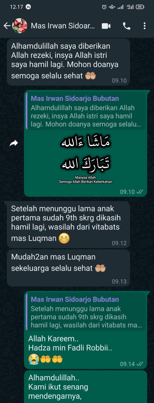 Ditengah live YouTube Ustadz Luqman Pontianak, masuk komentar: ‘suami saya sakit jantung, alhamdulillah sembuh setelah minum Vitabats.’ Sampai-sampai dokternya pun kepo, ‘Kok bisa sembuh?’