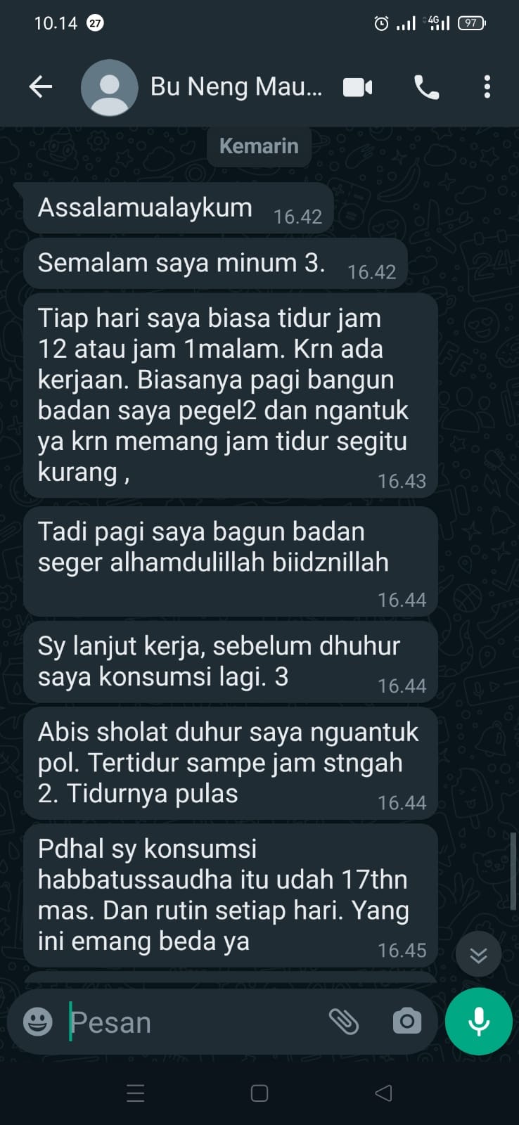 Bagi pak hassanuddin seorang pekerja konstruksi , stamina itu sangat dibutuhkan tapi karena penyakitnya sejak kecil beliau mudah lelah. Alhamdulillah pak hassanuddin bertemu vitabats habbatussauda yang dapat mengatasi masalah kelelahan dan pernafasannya